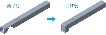 パイプインデックスの活用従来、45度に切断・溶接して製作していた脚部を、社内設備のパイプインデックスを活用し、1本の角パイプに切り欠きを入れて曲げる製法に変更しました。これにより、溶接箇所を削減し、製作時間を短縮しました。