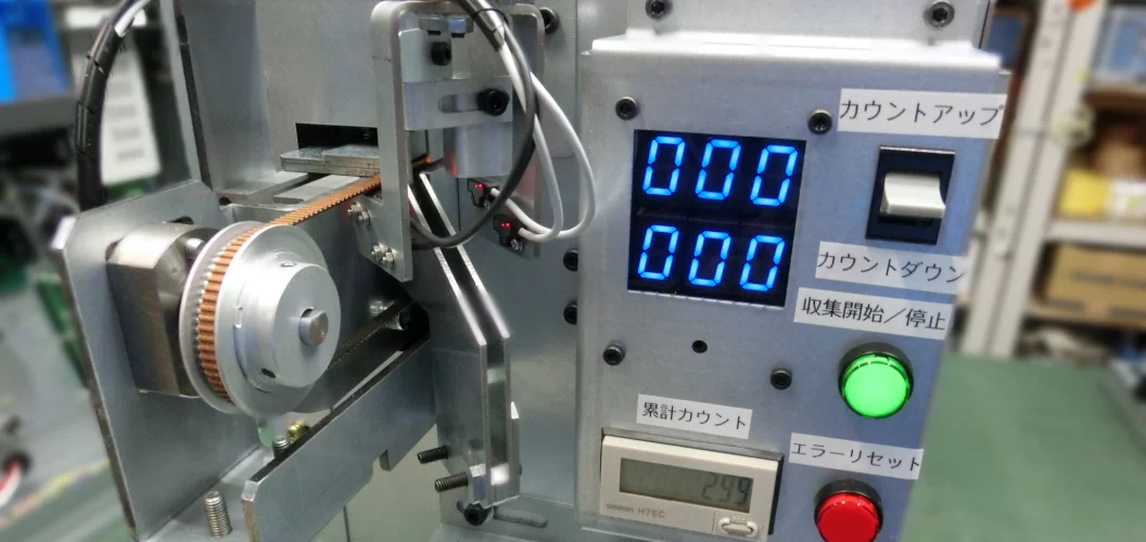 制御部には、高価なPLC(プログラマブルロジックコントローラ)ではなく**マイコン(マイクロコンピュータ)**を使用した専用基板を開発し、大幅なコストダウンと小型化を実現。試作時からサイズを約2/3に縮小しました。